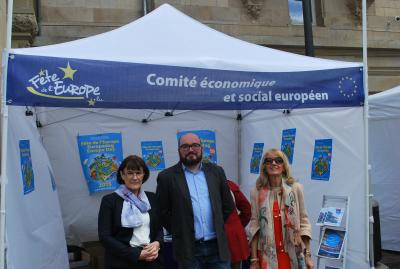 Au milieu du village européen, la délégation luxembourgeoise du Comité économique et social européen (CESE) et le CES du Luxembourg ont partagé, avec les citoyens, leurs prises de position et engagements sur des sujets comme la sensibilisation du public au développement, l’économie, l’emploi et l’environnement, qui sont des thèmes plus que jamais d’actualité pour l’ensemble des Européens.