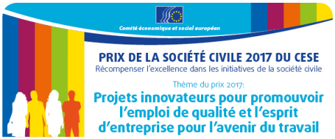 L'une de nos activités préférées, le Prix de la société civile du CESE, récompense des initiatives des organisations de la société civile ou des individus qui font une différence pour les citoyens. En 2017, le prix récompensera les projets innovateurs qui créent des emplois de qualité ou favorisent l'esprit d'entreprise.